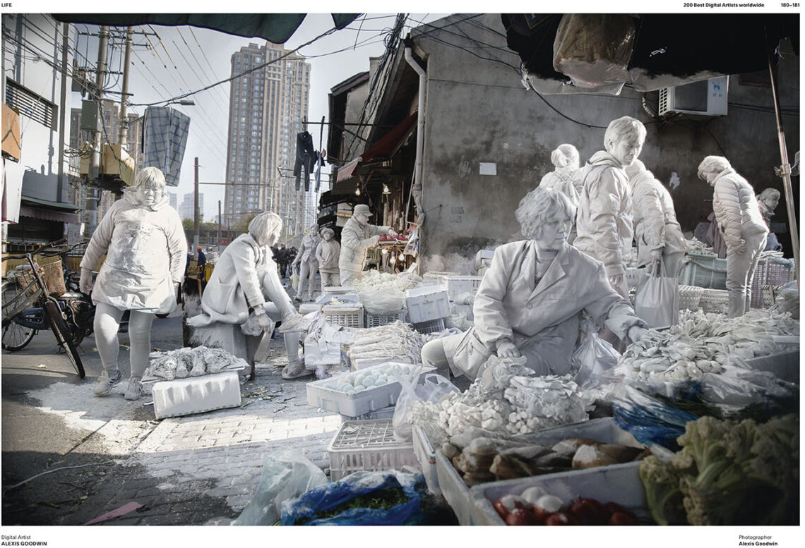 Nachdem kürzlich bei einem internationalen Fotowettbewerb von Sony ein KI-Bild, das als solches nicht gekennzeichnet war, unter 200.000 Einsendungen den ersten Preis in der Kategorie „Kreativ“ gewonnen hatte, stellt sich natürlich auch bei einem solchen Bildband die Frage, ob hier solche Bilder aufgenommen wurden oder wie man sie einschätzt. (Ein Interview mit dem Fotografen und Sony-Preisträger Boris Eldagsen finden Sie in der kommenden DOCMA). Insofern interessierte es mich diesmal besonders, wie die Lürzer-Jury mit diesem Problem umgehen würde. Mit welchen Riesenschritten die Entwicklung voranschreitet, lässt sich schon daran ablesen, dass Verfahren wie digitale Bildbearbeitung und CGI heute fast schon als traditionelle Techniken einzustufen sind, zusammen mit Holzschnitt oder Lithographie.
