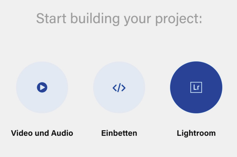 Sie können in Bēhance direkt auf Ihre Lightroom-Bibliothek zugreifen. Auf Adobes Online-Plattform Bēhance können Künstler kostenlos ihre Arbeiten präsentieren. Wenn Sie dort ein neues Projekt veröffentlichen, können Sie Bilder direkt aus der Lightroom-Cloud übernehmen. Beim Anlegen des Projekts wird Ihnen auf dem Startbildschirm das Lightroom-Icon angezeigt. Mit einem Klick auf das Symbol werden alle synchronisierten Fotos in der Auswahl angezeigt.