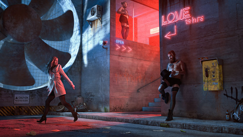Als sich Robert Larsen mit seiner Arbeit „Love Station“ bei uns für die „Friends of DOCMA“ bewarb, war die erste Frage: Welche Geschichte steckt wohl dahinter? „Ursprünglich war ich nur auf der Suche nach einen Objekt, das ich in Cinema4D als Fingerübung modellieren konnte“, erinnert sich Larsen. „Schnell fand ich einen PC-Gehäuselüfter und begann ihn in 3D nachzubauen. Doch schon nach einer guten Viertelstunde war die selbst gestellte Aufgabe gelöst. Ich wollte das C4D-Dokument nicht löschen und überlegte mir eine Szenerie, in der ich den Lüfter weiter verwerten könnte.