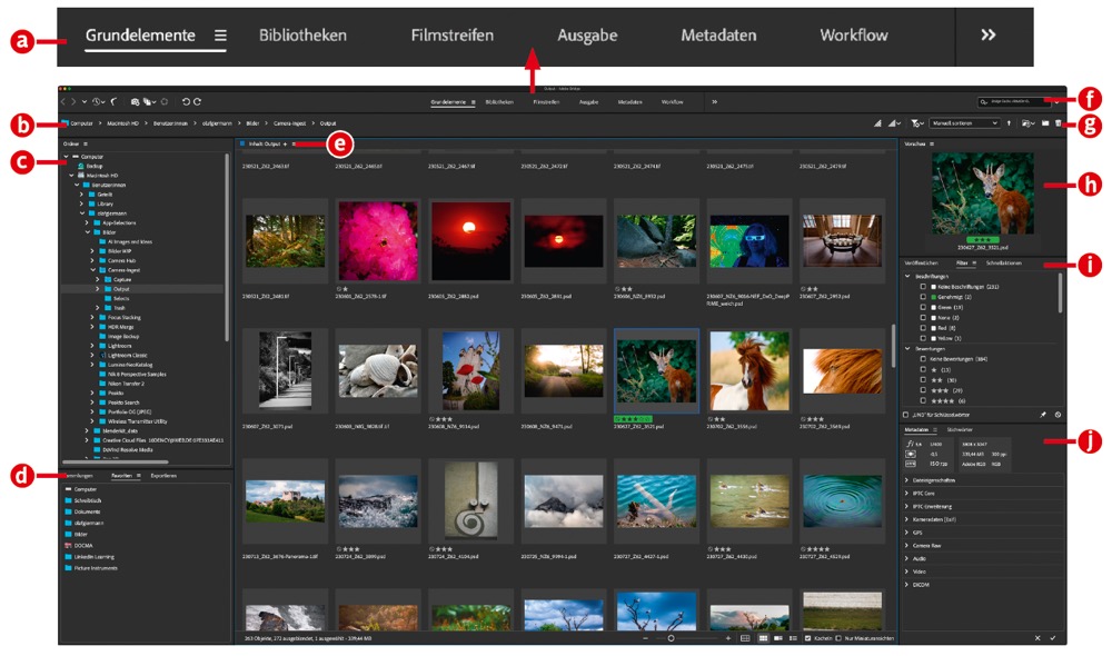Die Standard-Benutzeroberfläche von Bridge im Überblick
