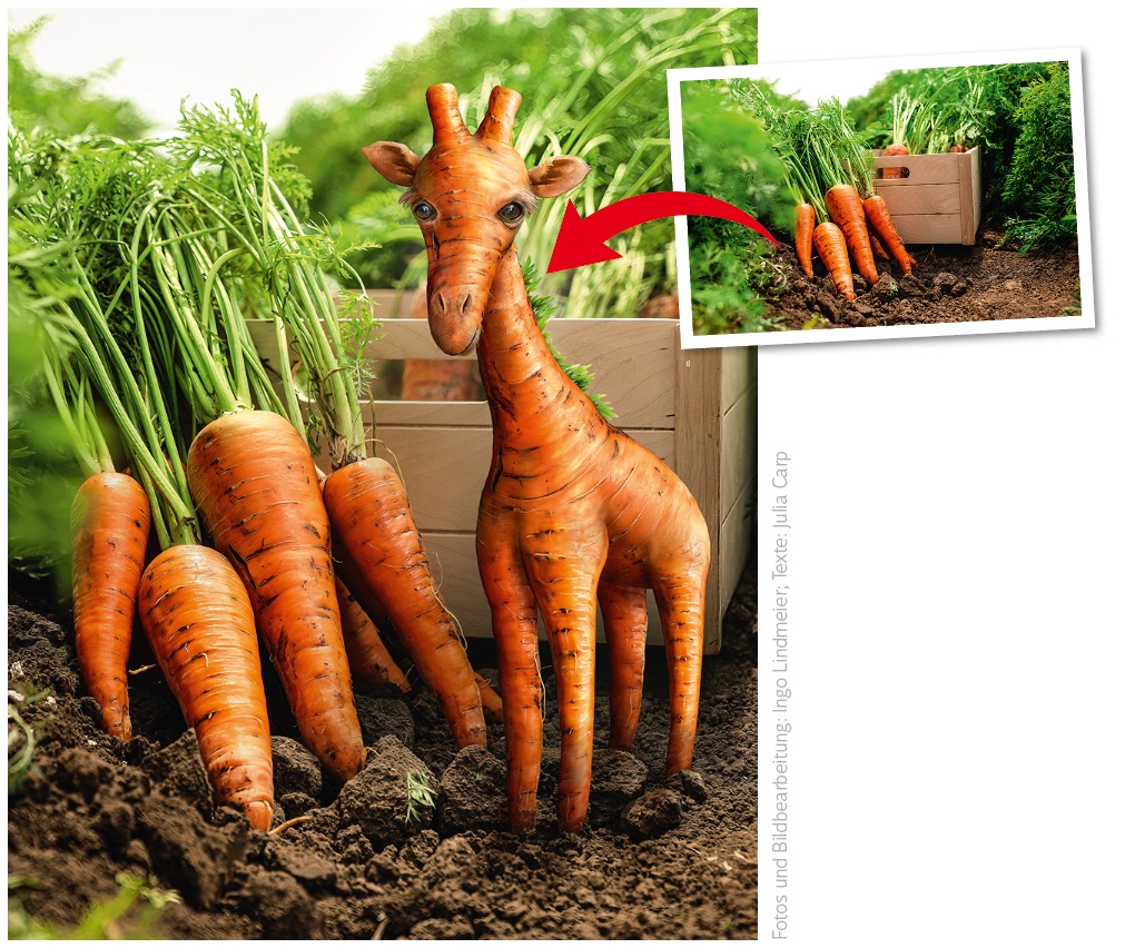 Eine Karotte der ganz besonderen Art: Lernen Sie von Ingo Lindmeier, wie Sie eine Giraffe mit einer Karotte zur „Karoffe“ verschmelzen lassen können.