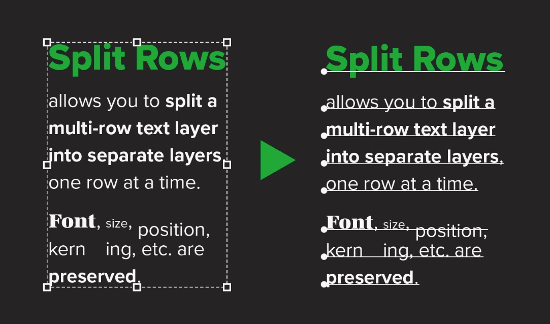 Wandelt Textblock in einzelne Zeilen auf separaten Ebenen um