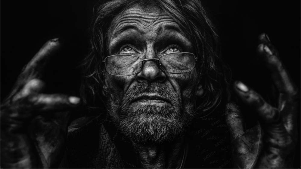 Bekannt wurde der britische Fotograf hauptsächlich mit seinen eindrucksvollen Bildern von englischen und amerikanischen Obdachlosen. Es gelingt ihm, diese Außenseiter der Gesellschaft in einer Form so zu inszenieren, dass man meint, in die Gesichter moderner Heiliger zu blicken. Mit seinen Fotos bringt er uns ganz nah an die Menschen heran. Obwohl wir den Porträtierten im Bild so viel näher kommen, als wahrscheinlich im realen Leben, entsteht nie der Eindruck, ihnen zu nahe zu treten oder sich gar vom Fotografen zum Voyeur machen zu lassen. Im Gegenteil. Jeder und jede strahlt eine unglaubliche Würde aus.