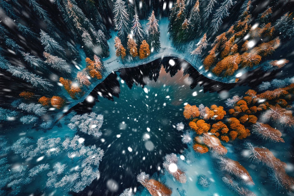 Tipp: Solche Fotos können Sie bei nächtlichem Regen/Schneefall auch selbst aufnehmen, indem Sie den Fokus auf den gewünschten Abstand einstellen und mit einem Blitz in die Dunkelheit hinein fotografieren.