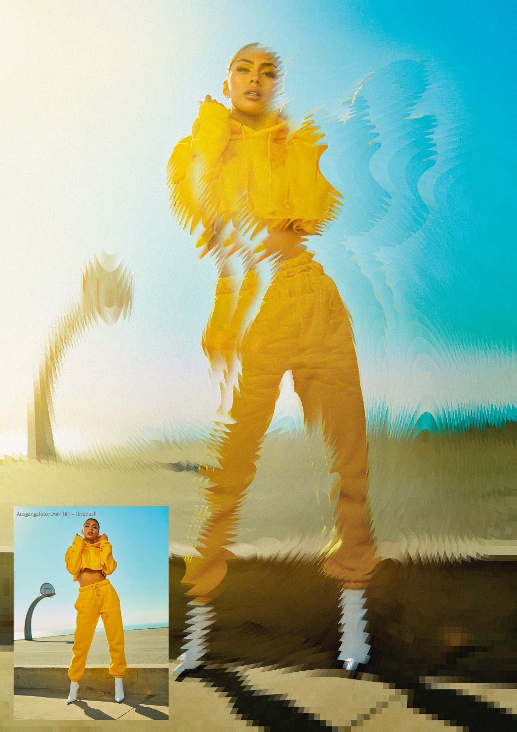 Mit Photoshops »Mosaikeffekt«-Filter teilen Sie ein Bild in monochrome Quadrate auf. Olaf Giermann zeigt, wie Sie ihn kreativ mit dem »Strudel«-Filter kombinieren können, um interessante Zackenvarianten zu erhalten.