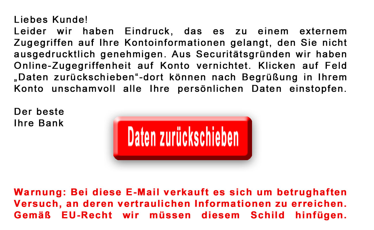 An betrügerische Mails, angeblich von Banken, Telefongesellschaften, Paketdiensten oder (besonders gut gemacht mit „echtem“ Absender) Zoll hat man sich ja inzwischen gewöhnt – jedenfalls die meisten von uns. Die Kennzeichnungspflicht KI-generierter Deepfakes und die implizite Erwartung, Betrüger würden sich daran halten, erweckt ein wenig die Hoffnung, Betrugs-Mail würden künftig aussehen wie diese und ordnungsgemäß vor bösen Absichten warnen. (Die Mail kam nicht wirklich, sondern ist meine eigene Schöpfung.)