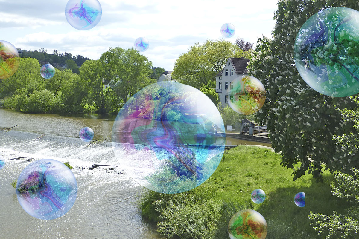 Kann man sie vielleicht künstlich selber machen? Dazu wäre einiges zu beachten: Die Schlieren auf der Oberfläche, die durch Interferenzen des Lichts zustande kommen – die komplizierten Spiegelungen auf der Außen- und Innenseite der Blase – die Reflexe der Lichtquellen … gar nicht so einfach!