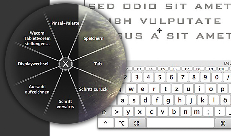 Mit einem Druck auf die entsprechende Taste oder per Drei-Finger-Touch-Geste öffnen Sie das Radialmenu?. Über dieses haben Sie mit einem einzigen Tastendruck Zugriff auf acht frei wählbare Funktionen. Aber: Im Tablett-Treiber können Sie fu?r jede der radialen Positionen ein weiteres Radialmenu? definieren. Dadurch haben Sie mit einem einzigen Tastendruck plus zwei Klicks schon Zugriff auf 8 × 8 = 64 Funktionen. Tatsächlich können Sie Radialmenu?s aber drei Mal ineinander verschachteln! So viele Aktionen mit so wenigen Klicks? Das berechnen Sie mal schön selbst!