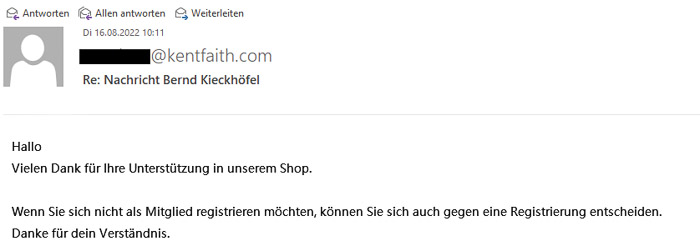 Das Kennwort zum unerwünschten Konto, zusammen mit meiner Mailadresse als Benutzername, wurde gleich mitgeliefert. Was weitere Fragen aufwirft. Interessant: Der Link zum Tracking aus der Bestellbestätigung führte jetzt auch zum Login des automatisch angelegten Kontos. Doch ohne Login kein Tracking, auch gut. Da ansonsten nichts passierte, beschwerte ich mich nach zwei Tagen über diese Praktik. Die Antwort kam nach zwei Stunden. Dass überhaupt eine Antwort kam, überraschte ebenfalls. Denn meine früheren Anfragen waren alle unbeantwortet geblieben; hier wurde über den Adapterkauf berichtet.