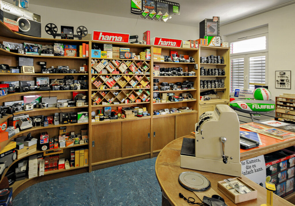 Die Sammlung besticht durch Vielfalt und Originalität. Echte Highlights sind die monumentale, 4,40 Meter lange Falz-&-Werner-Reprokamera aus den späten 1920er-Jahren sowie ein vollständig eingerichteter Fotoladen mit Originaldekoration und einer alten Registrierkasse. Viele Besucher erleben hier eine Zeitreise durch die Geschichte der Fotografie und entdecken Geräte, die sie einst selbst besessen oder bewundert haben. „Hatte ich auch mal“, „Weißt du noch?“ oder „Hätte ich damals gerne gehabt“ sind häufig gehörte Sätze. Selbst Kinder und Ehefrauen lassen sich von der Begeisterung anstecken.