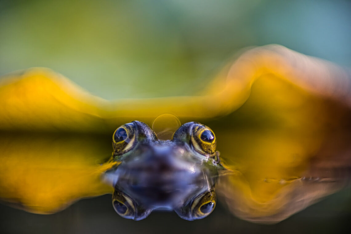 Als ich zum ersten Mal die Bilder von Roland Günter sah, war ich fasziniert. Dann kamen Fragen: Wie hat er die Frösche auf Augenhöhe abgelichtet? Lag er wartend am Ufer? Oder ist er …? Ja, er ist drin gewesen. Im Froschteich. Gewartet hat er dort auch. Ziemlich lange sogar. Eine Kamera ging dabei zu Grunde, sie versank im Teich. Roland liegt öfter in der Landschaft und wartet auf den entscheidenden Moment. Nachbarn wollten schon einen Rettungswagen rufen, seine Frau beruhigte. Das sei nur ihr Mann. Der macht das beruflich und will die biologische Artenvielfalt mit seinen Bildern erlebbar werden lassen. Hier gibt es einen Einblick. Einige Hundert Objektive stehen dazu bereit und Roland kennt seine Oldies gut. Genauso wie seine kleinen Klienten und ihre Fluchtdistanzen. Dazu passend wählt er die Kamera. Am MFT-Sensor erreichen ein Wollensak Ocillo-Raptar 75/1.9, ursprünglich für Bildschirmaufnahmen elektronischer Messgeräte konzipiert, oder das Cyclop 85/1.5 aus einem russischen Nachtsichtgerät äquivalente Brennweiten von 150 bis 190 Millimeter. Mit dem Meyer Görlitz Kino-Plasmat aus den 1920er Jahren und seinen 20 Millimeter Brennweite muss er gut Freund sein mit dem Frosch.