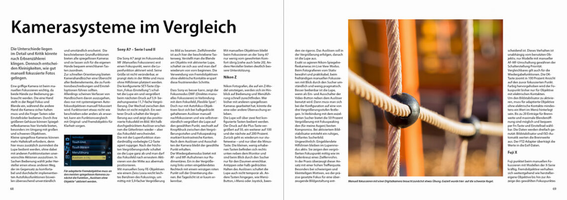 Nikon gehört zu den Herstellern mit langer Erfahrung beim Anschluss manueller Objektive. Die Handbuchsprache bezeichnet sie auch als Non-CPU-Objektive, gemeint sind Optiken mit Nikon-F-Bajonett, die keine elektrischen Kontakte besitzen. Hinterlegt man in der Kamera Brennweite- und Blendenwert im Menü, funktioniert auch die Matrix-Messung in der Regel einwandfrei, und hinterlegte Werte erscheinen in den Exif-Daten. Ohne diese Informationen schalten die meisten Nikon-Kameras automatisch auf mittenbetonte Belichtungsmessung.