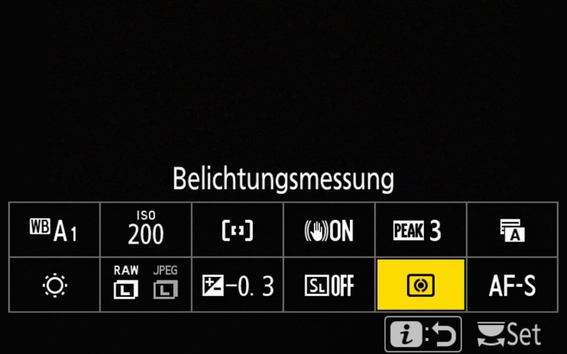 Um die Belichtungsmessmethode einzustellen, hilft ein Blick ins Handbuch. Manche Kameras haben dafür dedizierte Tasten, einige fordern den Tauchgang ins Menü, andere bieten den Zugang auch im Touch-, Quick- oder Individual-Menü. Nützlich ist auch, bei dieser Gelegenheit die Spot-Messung näher zu betrachten. Berücksichtigt wird bei dieser Methode nur ein winziger Punkt im ganzen Bild. Dazu kann das aktive Fokusfeld genutzt werden, aber auch eine definierte Fläche in der Bildmitte. Auch wenn es nur selten gebraucht wird, kann das Wissen um diese Eigenheit in kniffligen Lichtsituationen Probe- und Fehlbelichtungen ersparen.