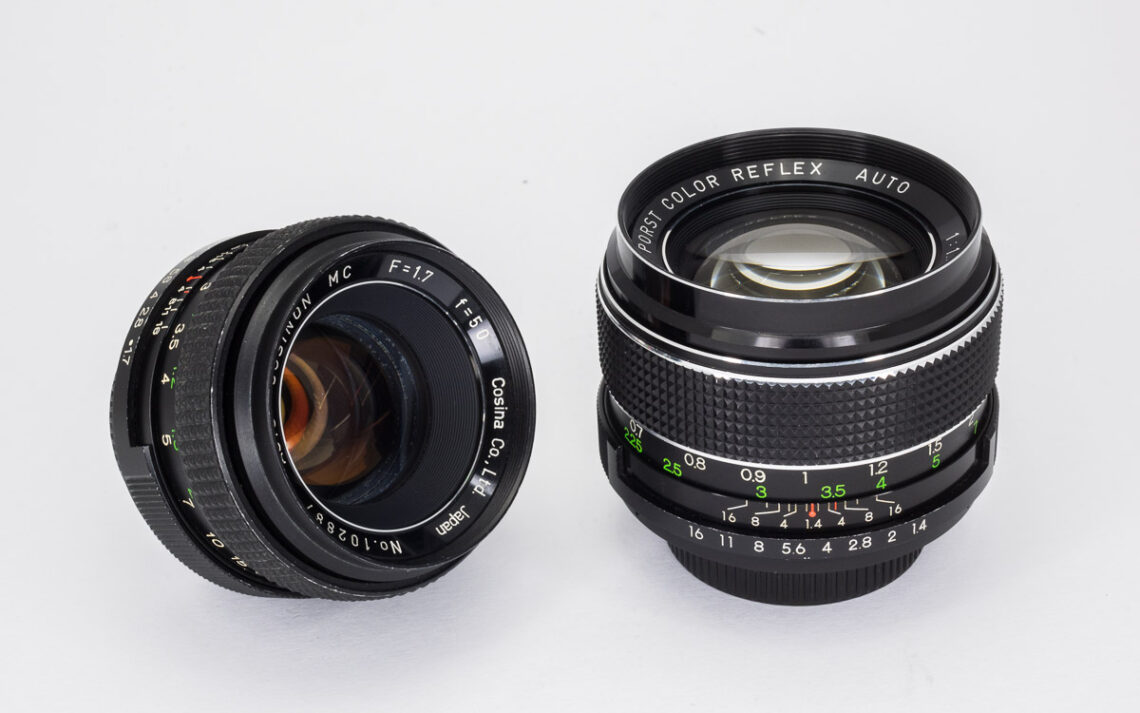 Ein lichtstarkes 1.4er galt lange Zeit als Vorzeige-Objektiv und „must-have-Item“ – auch in den Katalogen der Versandhauskönige. In vielen Fällen dürfte es sich um ein Cosinon 55/1.4 gehandelt haben, hergestellt in Japan von Cosina. Mit kosmetischen Anpassungen des Frontrings für Quelle, Porst und Konsorten sowie Variationen am Fokusring entstand der Eindruck verschiedener Objektive. Gab es auch Unterschiede im optischen Aufbau und den Abbildungseigenschaften?