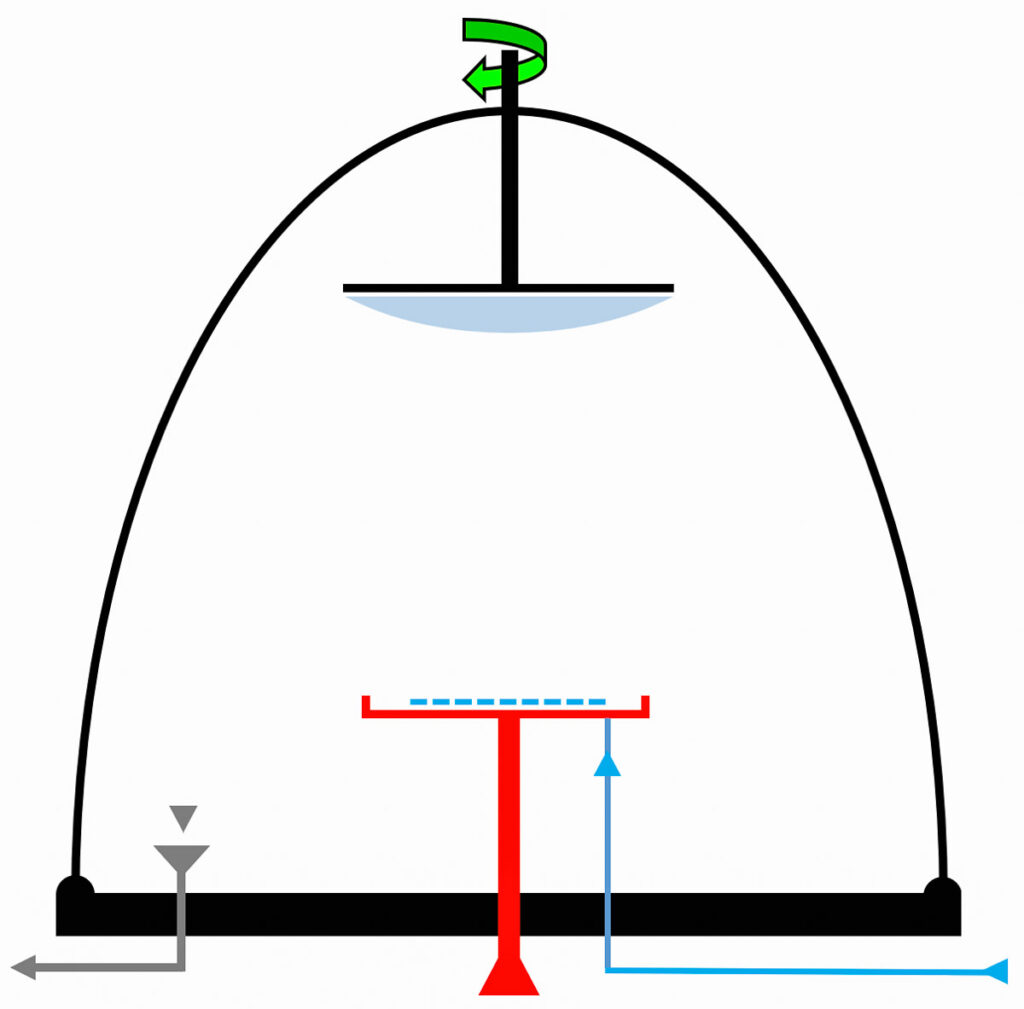 Die weniger transparent erscheinende Abkürzung T geht wohl auf den aus der Ukraine stammenden Erfinder Alexander Smakula und die russische Bezeichnung für eine reflexmindernde Beschichtung zurück, welche sich mit „verbesserter Transmission“ übersetzen lässt. Das Aufbringen von Oberflächenvergütungen auf Glas meldete Zeiss 1935 zum Patent an.Im unter einer Glasglocke erzeugten Vakuum wird das aufzudampfende Material (blau) einer beheizten Schale (rot) zugeführt. Im oberen Teil der Glocke sind die Linsen auf Haltern montiert, die sich gleichmäßig drehen.