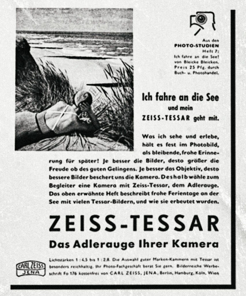 Das Tessar als Schärfewunder – die T-Vergütung führte laut Zeiss zu einem „Quantensprung des Bildkontrastes“. Die Tessar-Werbung prägte den Slogan „Das Adlerauge Ihrer Kamera“ und verwendete ihn bis in die 1950er Jahre.Ein Tessar 75/3.5 war das erste nach dem Zweiten Weltkrieg wieder produzierte Objektiv – sowohl in Jena als auch in Oberkochen.1976: Zur Contax RTS präsentierte Zeiss die T-Objektivserie mit klassischen Namen wie Planar, Sonnar und Tessar. Das Planar T 50/1.7 – eine für die moderate Lichtstärke vergleichsweise aufwändige 7/6-Konstruktion – ist eines davon: mit Suchtpotenzial. Der Blog stellt es hier vor.Planar T 50/1.7: Ein Objektiv mit Suchtpotential.