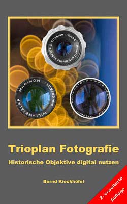 Wer den speziellen Trioplan-Look mag, sollte wissen, wie er erzeugt wird, welche Motive besonders gut geeignet sind und was nötig ist, damit die eigenen Aufnahmen sich vom Üblichen abheben. Das E-Book „Trioplan Fotografie – Historische Objektive digital nutzen“ beschreibt auf über 120 Seiten Objektive, Adapter, Aufnahmetechniken und Motivsuche. Tipps und Tricks unterstützen die praktische Umsetzung. Es ist für 8,99 Euro bei Amazon erhältlich. Mit der kostenlosen Kindle Lese-App für Android, iOS und PC lässt es sich auf fast jedem Gerät lesen.