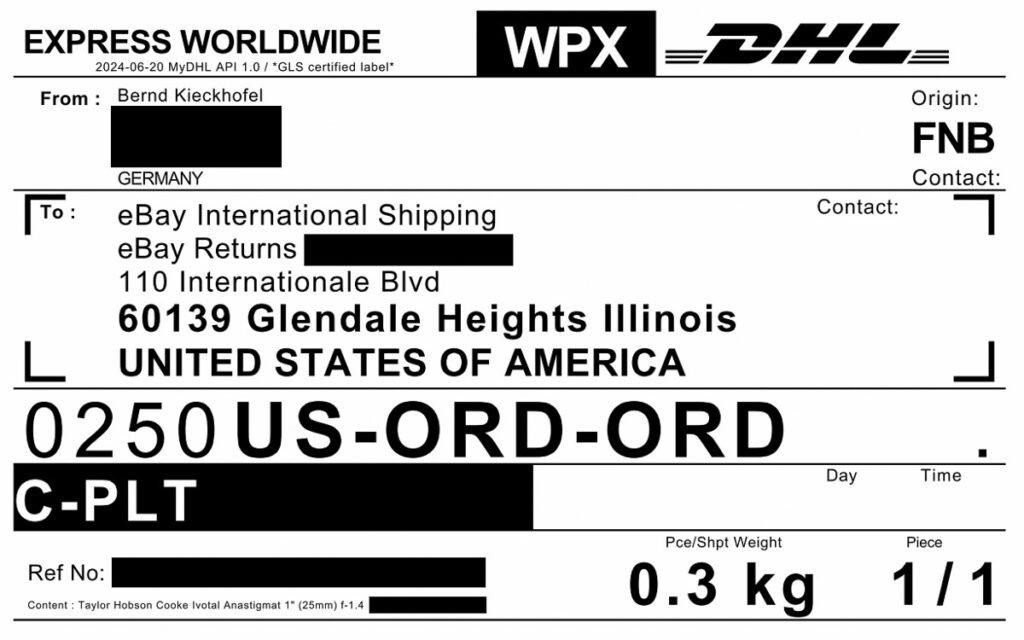 Für Kino-Objektive ist die empfehlenswerteste Versandoption eBay International Shipping. Die Versandkosten sind vergleichsweise moderat, für ein Objektiv fallen 20 bis 40 Euro an. Über die Rahmenbedingungen berichtet der Blog hier. Angesichts der verbrieften Garantien verblüffen die oft Teil vagen, von Schlagworten wie Mint Condition und Vintage geprägten oder gänzlich fehlenden Beschreibungen der Anbieter, die auf Nachfragen ausweichend oder gar nicht antworten.