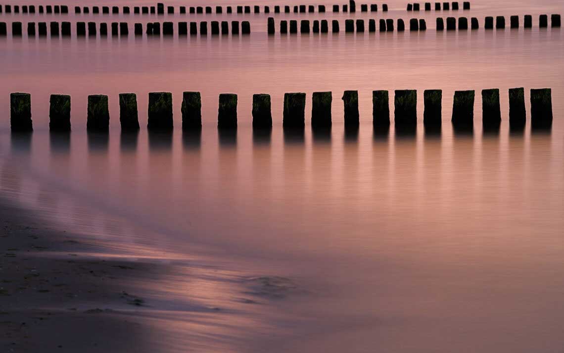 Langzeitbelichtungen lassen Bewegungen ineinander verlaufen. Damit dieser Effekt zur Geltung kommt, ist ein massiver und unbeweglicher Gegenpol nötig. Am Wasser eignen sich dazu Brücken, Buhnen, Stege, Steine und Ähnliches.