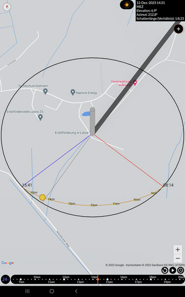 Für die mobile Planung auf Handy oder Tablet buhlen etliche Apps um Aufmerksamkeit. Einem Schweizer Taschenmesser nicht unähnlich, will zunächst die Konfigurationen erforscht und angepasst werden. PhotoPills, Sun Seeker und Sunsurveyor können einen Blick wert sein, sie sind für Android und iOS zum Preis von circa 10 Euro erhältlich. Puristisch, kostenlos und werbefrei bieten Sun Position Map und Sonnenverlauf unter Android 2D-Karten mit verschiedenen Ansichten (Straße, Satellit, Gelände). Linien markieren die Position von Sonnenauf- und Sonnenuntergang sowie die Richtung des Lichteinfalls in Abhängigkeit von der Uhrzeit. Die Darstellung geht vom aktuellen Datum aus und lässt sich über einen integrierten Kalender für jeden beliebigen Tag simulieren. Standorte können mit Notizen gespeichert werden. Vergleichbares verspricht Sonnenkarte unter iOS, in der kostenlosen Version mit Werbung. Interessant ist auch Sun Locator für Android. Übersichtlich aufgebaut und nach dem Download sofort sinnvoll einsetzbar. Die kostenlose Lite-Version zeigt anschaulich zusätzliche Pro-Features ohne zu behindern. Bei der namensgleichen iOS-App handelt es sich um eine gänzlich andere Anwendung.