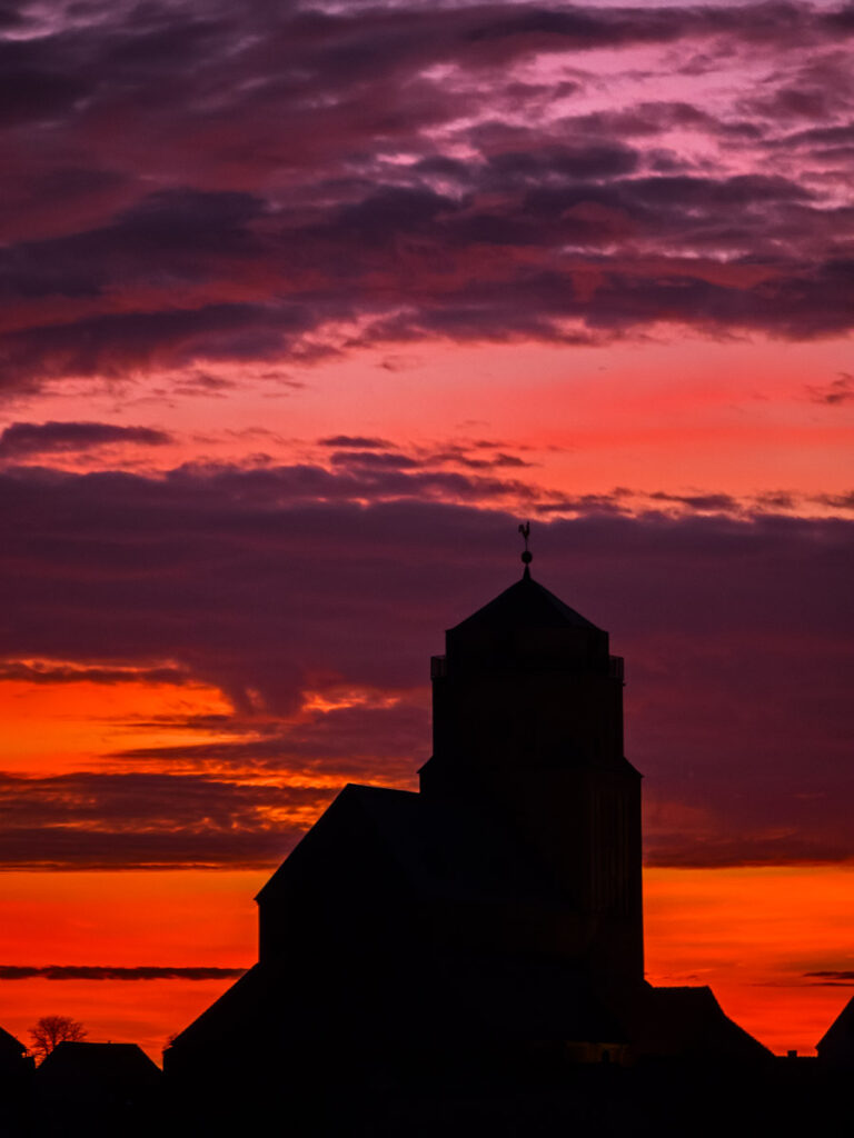 Am Abend fällt das Warten bei stabilen Wetterverhältnissen auf den besten Moment leicht. Die Lichtverhältnisse lassen oft schon eine Weile vorher erahnen, wie sich die Situation entwickeln könnte. Kurz nach Sonnenuntergang sind die Farben mitunter besonders intensiv. Apps wie Exsate Golden Hour nennen Zeitpunkt und Dauer der Goldenen und Blauen Stunde.