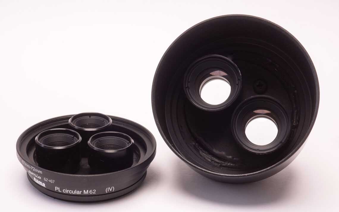 Die Kamera-Modelle 402 und 454 besitzen jeweils vier Objektive und dienten einst im Fotostudio für schnelle Passbilder. Inzwischen obsolet, ist die alte Technik heute günstig erhältlich. Ein von Cyrill Harnischmacher in der c’t Fotografie 01/2020 beschriebener Ansatz weckte meine Neugier. Allerdings zeigten erste Experimente, dass eine Streulichtblende nötig ist, was verschiedene Modifikationen erforderte und auch das Verkleben der Einzelteile weitgehend überflüssig machte. Über den sichtbaren Nutzen von Streulichtblenden für Altglas wurde hier berichtet.