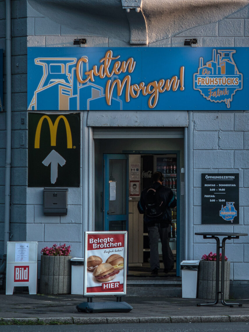 Vielleicht wird diese Kultstätte nur von Ureinwohnern und echten Malochern geschätzt. Den Laden wuppen fünf gestandene Frauen. Von Montag bis Freitag ab 5 Uhr. Mit der Bezeichnung „Fleischwurst-Brötchen“ auf der Tafel hinter der Theke meinen sie es ernst: Fleischwurst mit Brötchen und nicht umgekehrt. Das gilt auch für alle anderen Belag-Variationen, die Bilder auf dem Plakat vor der Tür lassen Vorahnungen entstehen. Salatblättchen, Gürkchen, Tomatenscheibchen? Verzierungen sucht man hier vergeblich, handfeste Kost dominiert. Gefrühstückt wird vor Ort oder to-go. Eindrucksvoll ist auch der illustre Fuhrpark vorm Haus: ausgewachsene Laster der städtischen Müllabfuhr, Kastenwagen vom Amazon-Lieferdienst bis hin zu abenteuerlich aussehenden Transportern mit exotischen Kennzeichen. Hier ist die Adresse, alles Weitere klärt sich vor der Theke. Vom Frühjahr bis in den Spätsommer ist Frühstück to-go eine gute Wahl und LaPaDu so nah, dass der Kaffee kaum kalt werden kann.