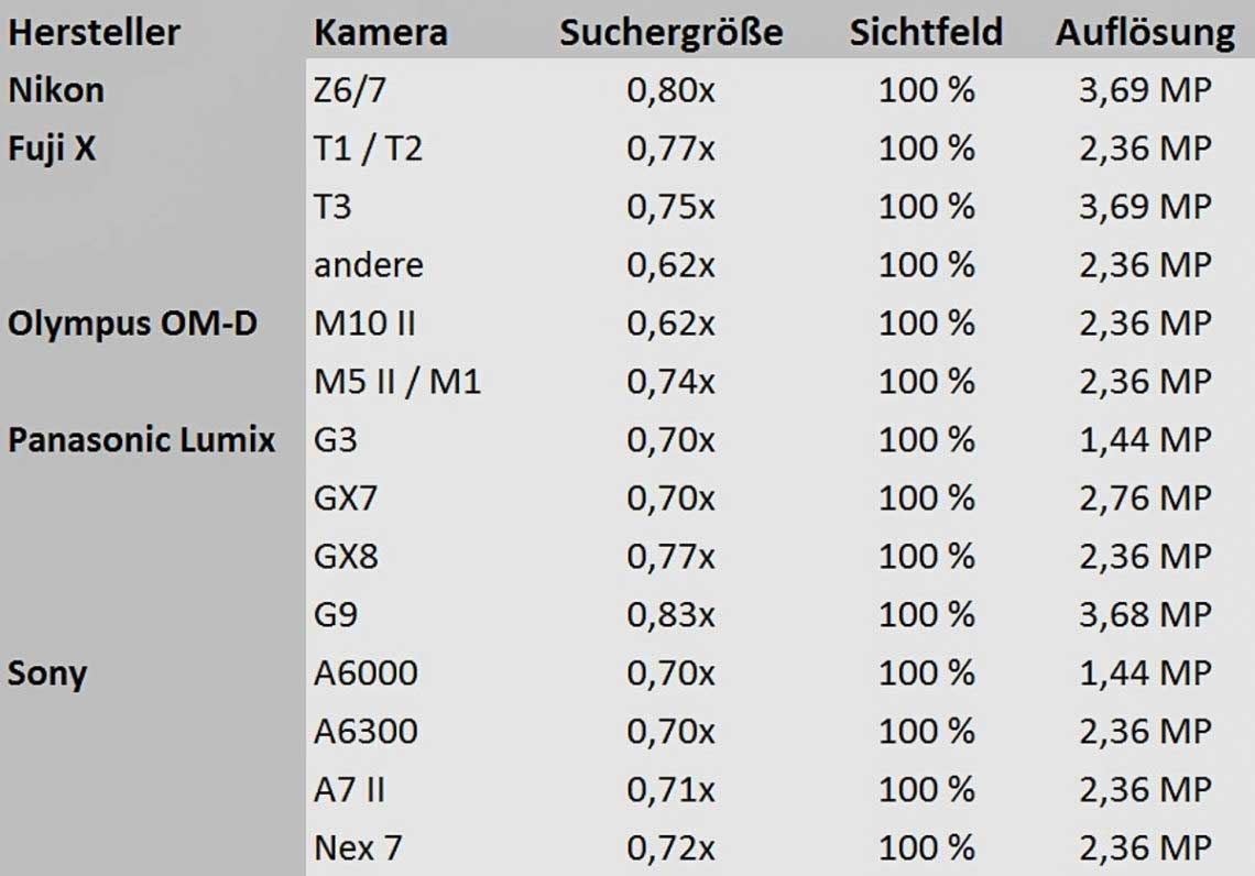 Wer noch mit analogen Kameras fotografiert hat, weiß, wie einfach es gewesen ist, mit Mikroprismenfeld und Schnittbildindikator zu fokussieren. Ihre Sucher waren hell und groß. Gute Augenmuscheln gehörten bei Profi-Modellen zum Lieferumfang oder wurden als Zubehör angeboten.