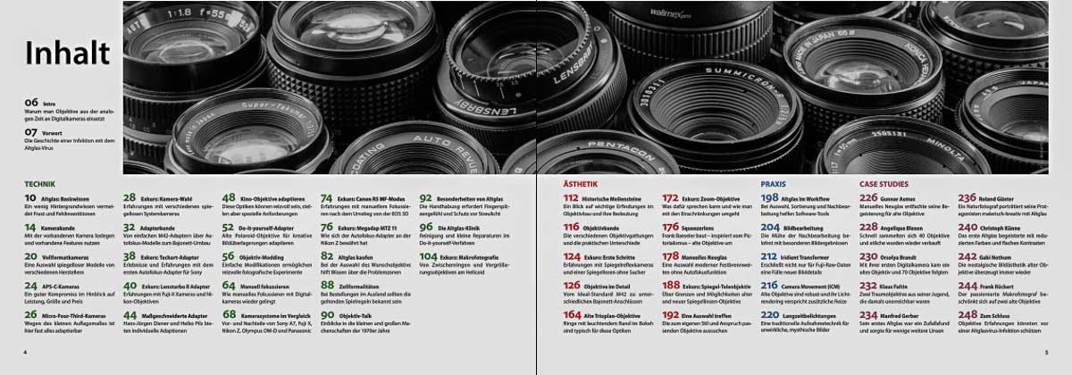 Hinzugekommen sind in der 6. Auflage zehn neue Kapitel, beispielsweise die Adaption von Kino- und Polaroid-Objektiven oder Exkurse zu Canon R5 und Megadap MTZ 11. Zahlreiche Kapitel wurden aktualisiert und erweitert, unter anderem „Objektive im Detail“ um satte 12 Seiten. Der Gesamtumfang ist von 188 auf 254 Seiten gewachsen. Über 470 Abbildungen illustrieren den Text.