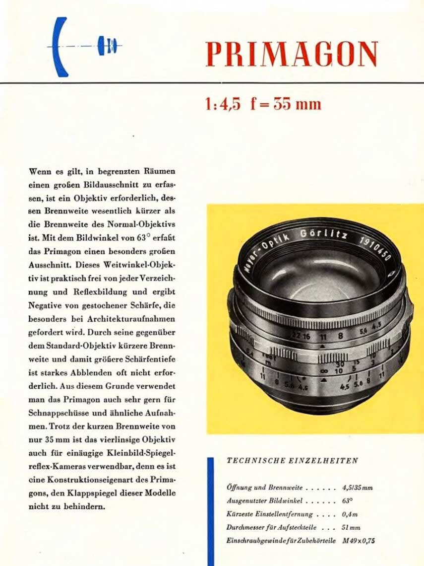 Das Zeiss Flektogon 35/2.8 gehört unzweifelhaft zu den ersten Weitwinkelobjektiven für Spiegelreflexkameras. Es erschien 1949 – über 30 Jahre nach Erfindung des Kleinbildformats. Einige Jahre später folgte das Primagon 35/4.5 von Meyer Görlitz. Gemeinsamkeit dieser und weiterer früher Weitwinkel-Veteranen: Eine große, streulichtempfindliche Frontlinse, die gut abgeschirmt werden will.