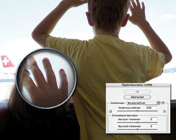Von einer Chromatischen Aberration spricht man bei einem häufig auftretenden Fehler, zu dem es kommt, wenn das Objektiv verschiedene Farben-Frequenzen nicht auf denselben Punkt fokussieren kann. Der Regler „Chromatische Aberration B/G“ korrigiert die dabei entstehenden blau-gelben Farbränder. Um die Wirkung beurteilen zu können, sollten Sie in hohen Zoomstufen auch jenseitsMehr