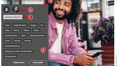 Bei kontrastreichen Kanten (a) bietet sich der Einsatz des »Hintergrund-Radiergummis« an. Damit löschen Sie wie mit dem herkömmlichen »Radiergummi« Teile des Bildes. Im Gegensatz zu diesem stellen Sie beim »Hintergrund-Radiergummi« in den Optionen einen Toleranzwert ein. Alles, was sich im Löschkreis befindet und farblich innerhalb der Toleranzgrenze liegt, wird gelöscht.Mehr