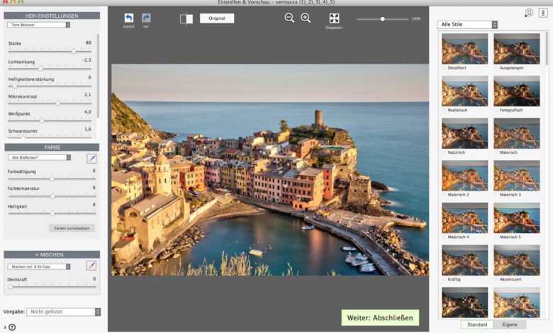 Die im Mai 2017 erschienene, neueste Version der HDR-Software Photomatix Pro für Windows und MacOS ist ab sofort auch in deutscher Sprache erhältlich. Mit Photomatix Pro 6 können Anwender aus Belichtungsreihen HDR-Fotos erzeugen. Alternativ lassen sich mit dem Programm auch Einzelfotos bearbeiten. Für die zu einem HDR-Bild zusammengeführten Fotos bietetMehr