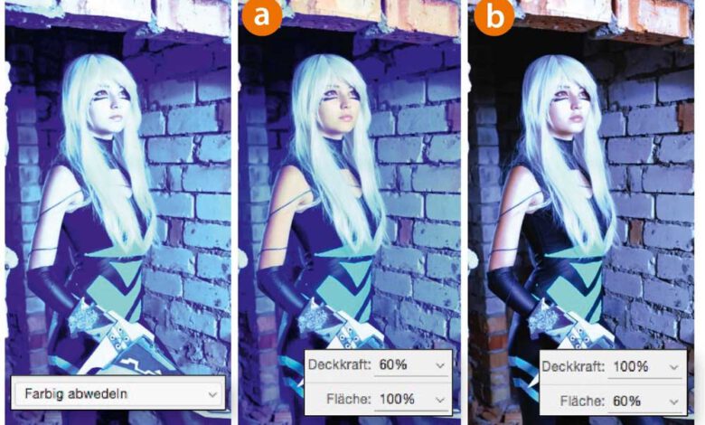 Fragen Sie eine Reihe von Photoshop-Anwendern nach dem Unterschied zwischen »Deckkraft« und »Fläche«, dann werden Ihnen die meisten wie aus der Pistole geschossen richtig antworten, dass das Senken der »Deckkraft« sowohl die Inhalte als auch die Ebenenstile einer Ebene ausblendet, während bei »Fläche« die Ebenenstile nicht abgeschwächt werden. Doch dasMehr