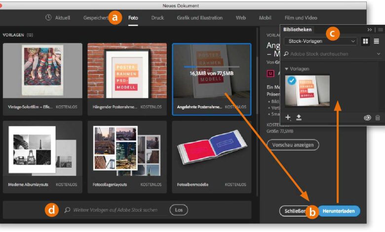 Gerade dann, wenn Sie Auftragsarbeiten durchführen, bei denen Stockfotos zum Einsatz kommen, entscheidet sich der Auftraggeber gern einmal in letzter Sekunde für ein anderes Stockfoto. Dank der tiefgehenden Integration von Adobe Stock in Photoshop CC 2017 und dank cloudbasierter Smartobjekte, Smartfilter und Einstellungsebenen können Sie Bilder schnell finden, einbinden undMehr