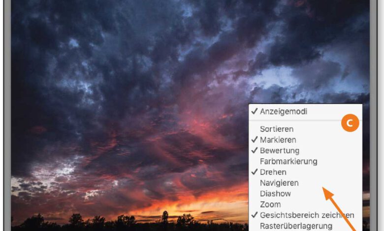 Die Werkzeugleiste (a) unterhalb des Bildbereichs von Lightroom Classic bietet je nach aktivem Lightroom-Modul unterschiedliche Optionen. Nicht jeder benötigt alle davon. Deshalb blenden Sie doch nur die Optionen ein, die Sie häufig einsetzen. Klicken Sie dazu auf den Pfeil rechts außen in der Leiste (b) und setzen SIe ein HäkchenMehr