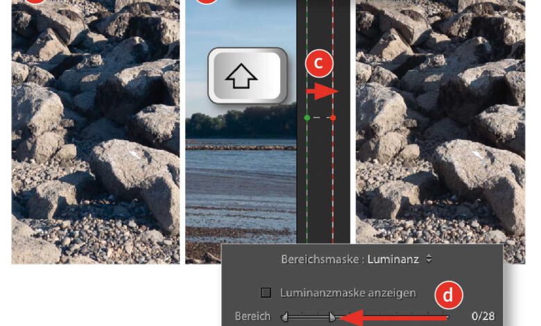 Die Bereichsmaske beschleunigt das selektive Optimieren Ihrer Fotos in Lightroom Classic CC oder Camera Raw von Photoshop CC enorm. Denn statt feine Detailänderungen mühsam in hoher Zoomstufe einpinseln zu müssen, können Sie die Korrektur zunächst grob mit »Verlaufsfilter«, »Radial-Filter« oder »Korrekturpinsel« auftragen und dann per Schieberegler festlegen, auf welche Helligkeits-,Mehr