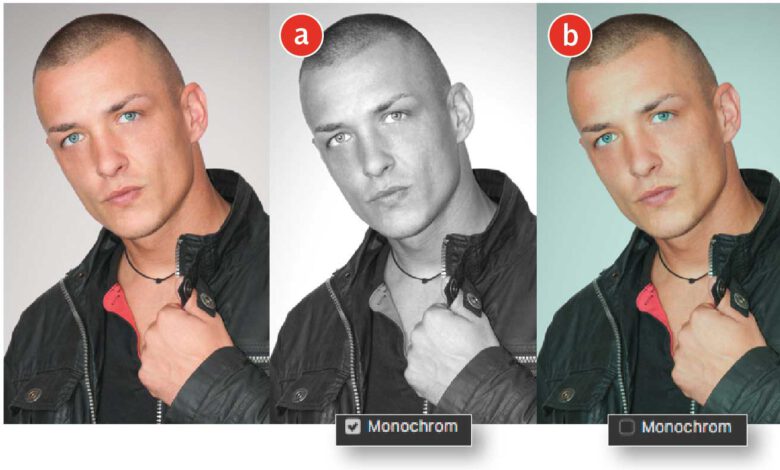 Die Einstellungsebene »Kanalmixer« bietet bei einer Graustufenumsetzung im Gegensatz zur Korrektur »Schwarzweiß« die Möglichkeit, die drei RGB-Kanäle abzumischen. Da er nicht auf vordefinierten Farbtonbereichen basiert, ist die Anfälligkeit für unschöne Helligkeitssäume an Kanten deutlich geringer als bei »Schwarzweiß«. Farbe oder monochrom? Durch Aktivieren der Checkbox »Monochrom« definieren Sie als »Ausgabekanal«Mehr