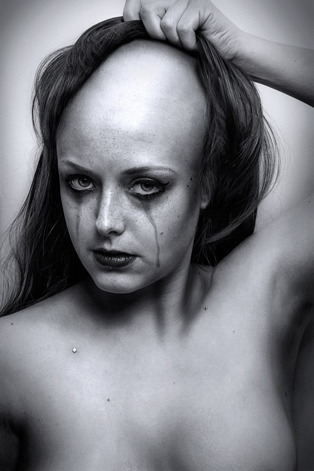 Die Entstehung seiner Photoshop-Retusche erläutert Sebastian Lüdtke so: „Die Bildidee kam spontan. Die CF-Karte zeigte nur noch 5 freie Bilder. Das Bild entstand, als das Model nach einem Shooting die Perücke abnahm. Darunter kam das hautfarbende Haarnetz mit den darunterliegenden echten Haaren zum Vorschein. Nach 1-2 traurigen Blicken war das Basisfoto fertig. In Photoshop wurde aus Haarnetz und Haaren nach langem ""Stempeln"" und ""Ausbessern"" eine Glatze. Um die Wirkung des Bildes zu unterstreichen, wurden zusätzlich Tränen bzw. verlaufende Schminke hinzugefügt. Hinzu kommt Dodge&Burn Kontrastoptimierung, Helligkeitskorrekturen, eine Vignetierung, Scharfzeichnungen und eine Schwarz-Weiß-Konvertierung.“
