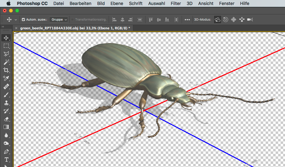 4. Bearbeitung: Bearbeiten Sie die Datei nun mit den Adobe Photoshop CC 3D-Werkzeugen. Zudem können Sie auch die meisten klassischen Bildbearbeitungswerkzeuge anwenden. Wenn Sie bisher wenig Erfahrung im Umgang mit den Adobe Photoshop CC 3D-Dateien haben, finden Sie hier weitere Unterstützung.
