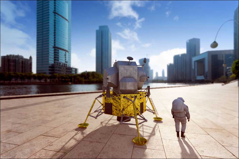 Im nächsten Heft (DOCMA 86) werde ich Ihnen meine Vorgehensweise für das folgende Bild vorstellen. Dabei habe ich die einzelnen Elemente und Spiegelungen nicht einmal durch die Bank gerendert (was in Photoshop viel zu lange dauert).