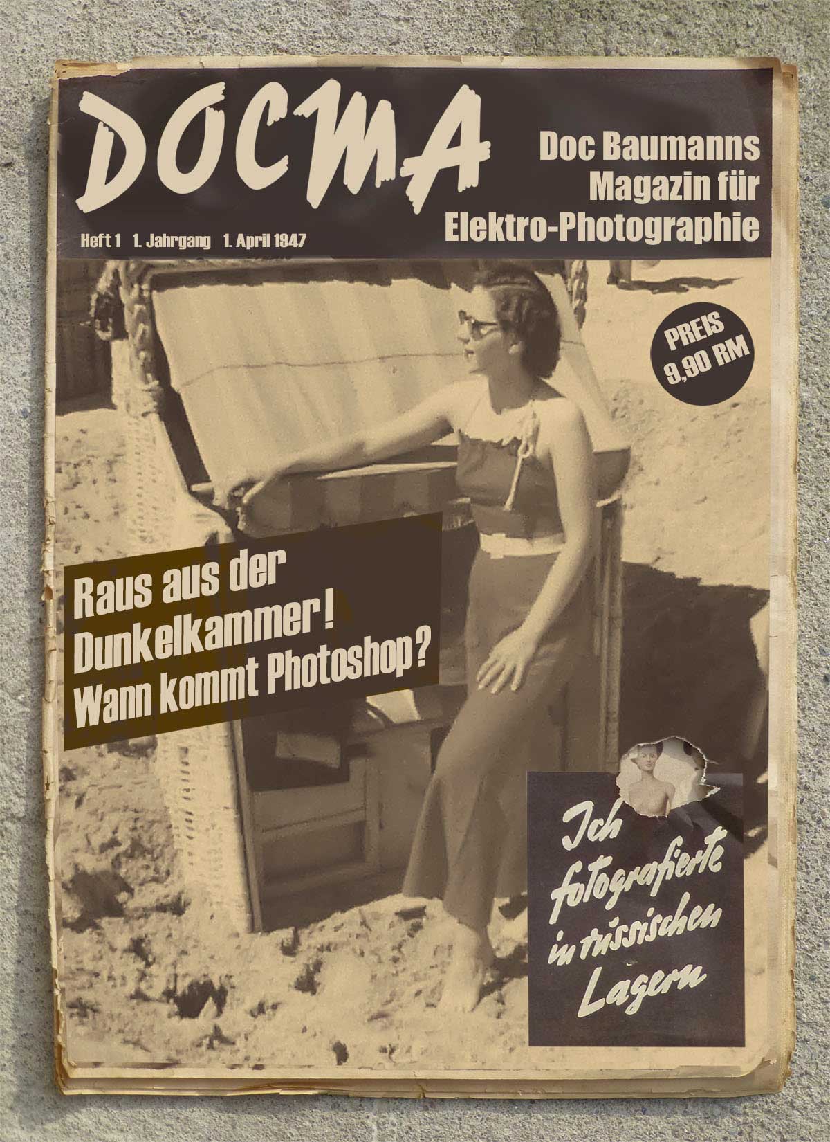 Wir hätten es uns 1947 wirklich nicht träumen lassen, dass DOCMA einmal in fast jedem Haushalt neben dem Computer liegen würde und einfach zur Familie gehört. Millionen Menschen von Bern bis Flensburg, von Aachen bis Frankfurt/Oder warten alle zwei Monate gespannt auf ihre neue DOCMA. Der Aufgabe, all diese Leserinnen und Leser mit lehrreichen Beiträgen zur Elektro-Photographie (auch, wenn wir sie heute digitale Bildbearbeitung nennen) zu versorgen, fühlen wir uns noch immer verpflichtet – und so soll es auch in den nächsten 68 Jahre bleiben.