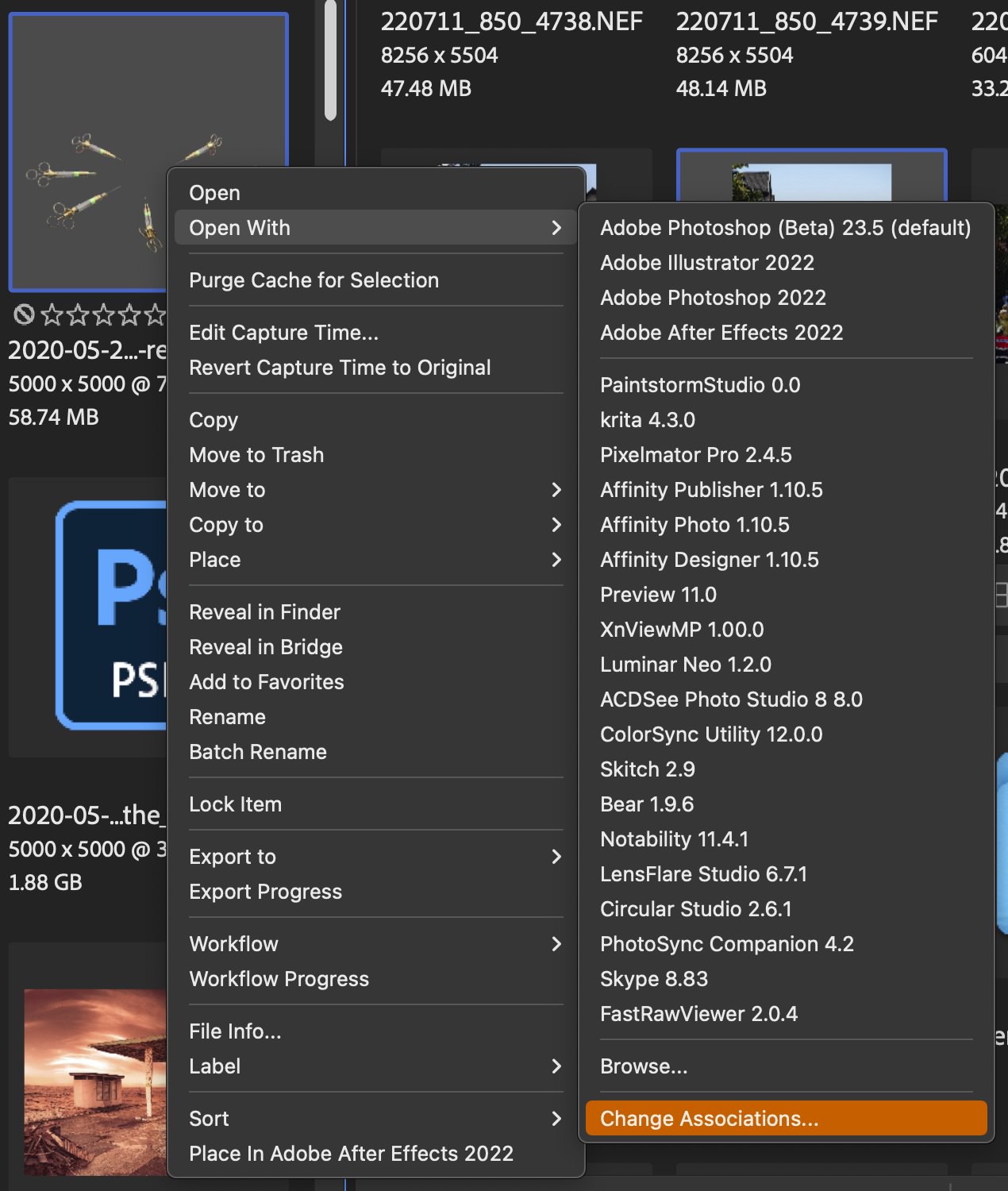 … und zum anderen nun auch die Möglichkeit besteht, direkt aus dem Kontextmenü heraus, in die Voreinstellungen zu springen und die Dateiformat-Zuordnung zu ändern: