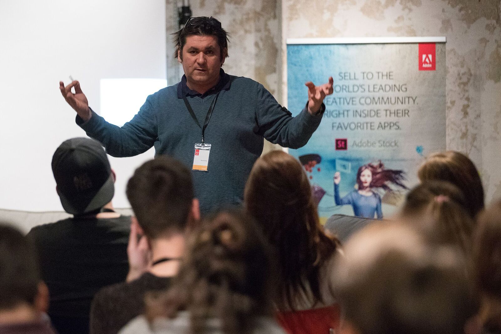 Gastgeber Murat Erimel, seines Zeichens Head of Marketing bei Adobe Stock für den zentraleuropäischen Raum, moderierte beide Workshop-Tage und erklärte den Teilnehmern Adobes Vision von Adobe Stock als kreativen Marktplatz.