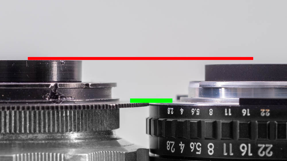 Bauartbedingt erreichen Objektive mit Entfernungseinstellungen im Nahbereich ihre größte Baulänge, weil sie nach vorne ausfahren. Rückseitige Teile des Objektivs können dann nicht den Spiegel gefährden. Allerdings sollte man in Unendlich-Einstellung unbedingt vermeiden, den Auslöser zu betätigen. Wer ganz sicher gehen möchte, vergleicht das zu adaptierende Objektiv mit einen Nikon Originalobjektiv.