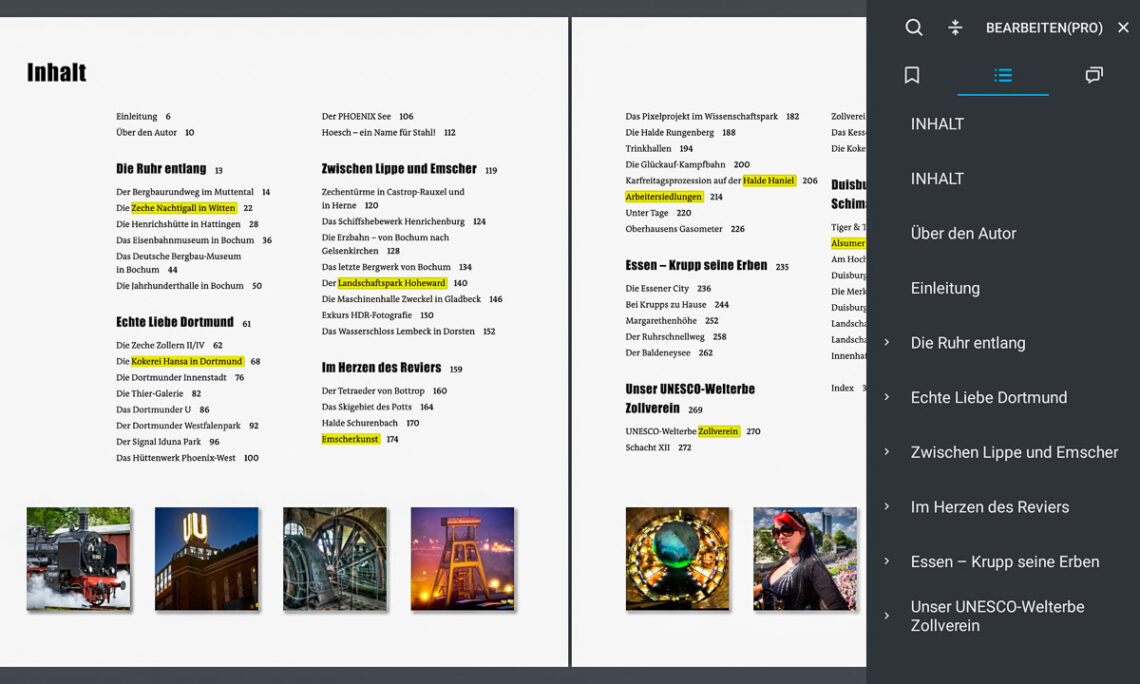 Neben der RVR-Karte bietet Wikipedia einen prägnanten Einstieg für die Planung einer Foto-Tour. Die 56 Hauptattraktionen sind nach Schwerpunkten übersichtlich gelistet und verlinkt. Der jährlich aktualisierte Entdeckerpass des Dachverbands RVR bietet auf über 140 Seiten kompakt zusammengefasst die wichtigsten Details zu diesen Liegenschaften. Die verschiedenen Themenrouten zeigen Facetten des Ruhrgebiets in Bildern und Hintergrundinformationen als Download. Hier finden sich auch Kuriositäten wie das erste preußische Krematorium von 1908, dass erst 1912 nach einer langwierigen Gesetzesänderung in Betrieb ging.