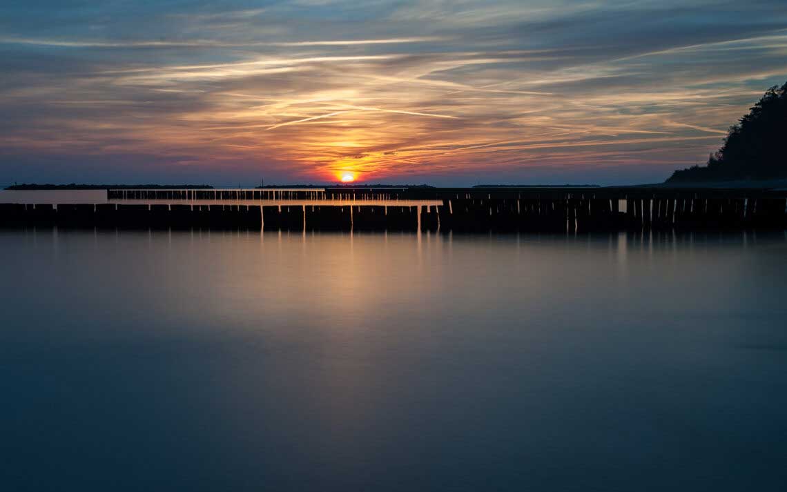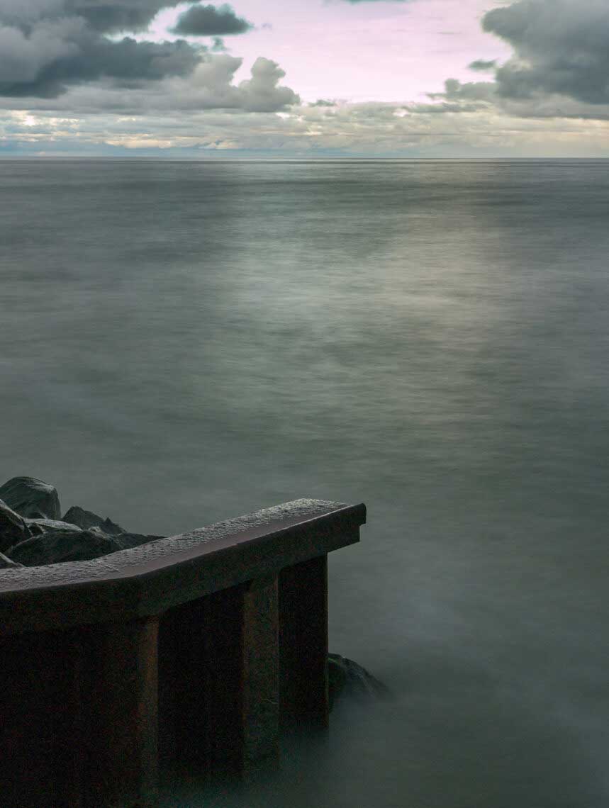 Langzeitbelichtungen lassen Bewegungen ineinander verlaufen. Damit dieser Effekt zur Geltung kommt, ist ein massiver und unbeweglicher Gegenpol nötig. Am Wasser eignen sich dazu Brücken, Buhnen, Stege, Steine und Ähnliches.