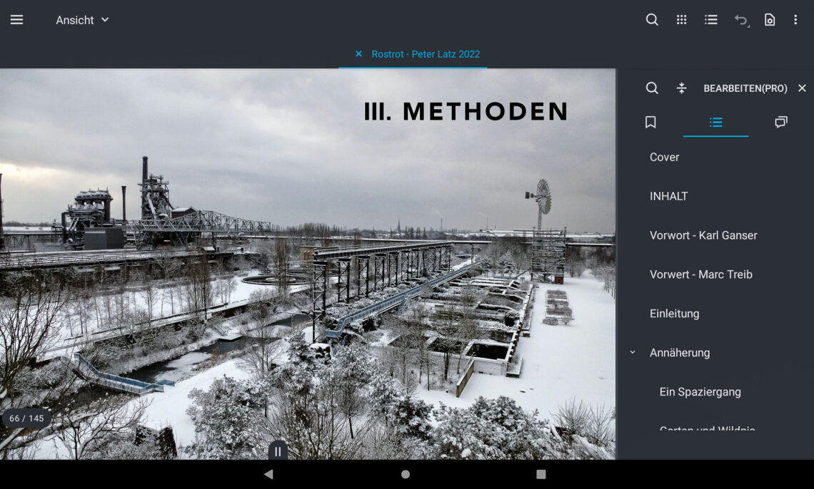 Peter Latz’ persönliche Erinnerungen, seine detaillierte Dokumentation und Reflexion sowie die Fülle anregender Fotos machen Lust, die Vielfalt des Parks mit dem Buch in der Hand zu erkunden. Was mit dem E-Book besonders leicht ist, der Umfang von 288 Seiten fällt hier nicht ins Gewicht. Einen ersten Blick ins Buch gibt es hier. Welche Vorteile E-Books, bieten wurde hier ausführlich vorgestellt.