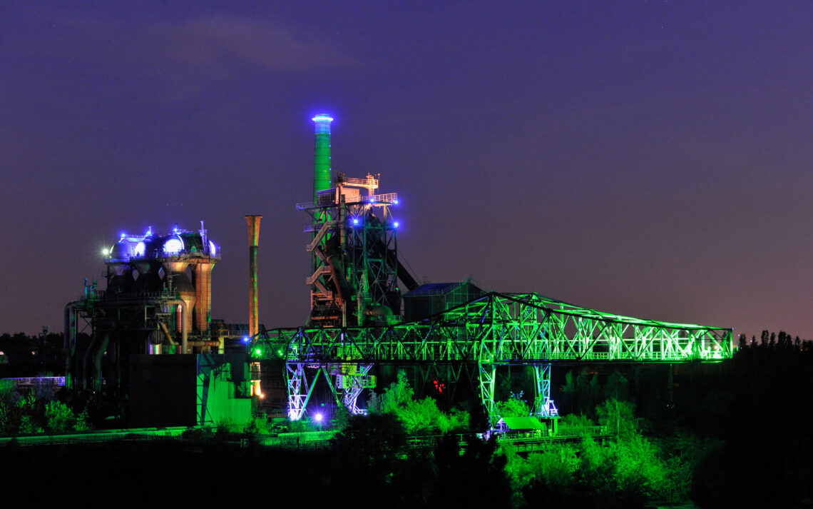 Der Hochofen ist das weithin herausragende „Megazeichen“ im Landschaftspark Duisburg. Nach Latz „der verrückteste, interessanteste, coolste und wahrscheinlich teuerste Aussichtsturm, den man sich jemals ausdenken konnte“. Vergnüglich zu lesen ist auch Karl Gansers Exkurs zum Lichtkonzept von Jonathan Park, mit wohl platzierten Seitenhieben Richtung Administration und Licht-Epigonen. Anyway: Mr. Park kam aus London, kletterte scheinbar planlos durch den Park, illuminierte die von ihm ausgewählten Orte eigenhändig – und überzeugte auf ganzer Linie. Der WDR widmete dem 2022 verstorbenen Ganser, dem „Vater der Industriekultur“, einen kurzen Audio-Beitrag.