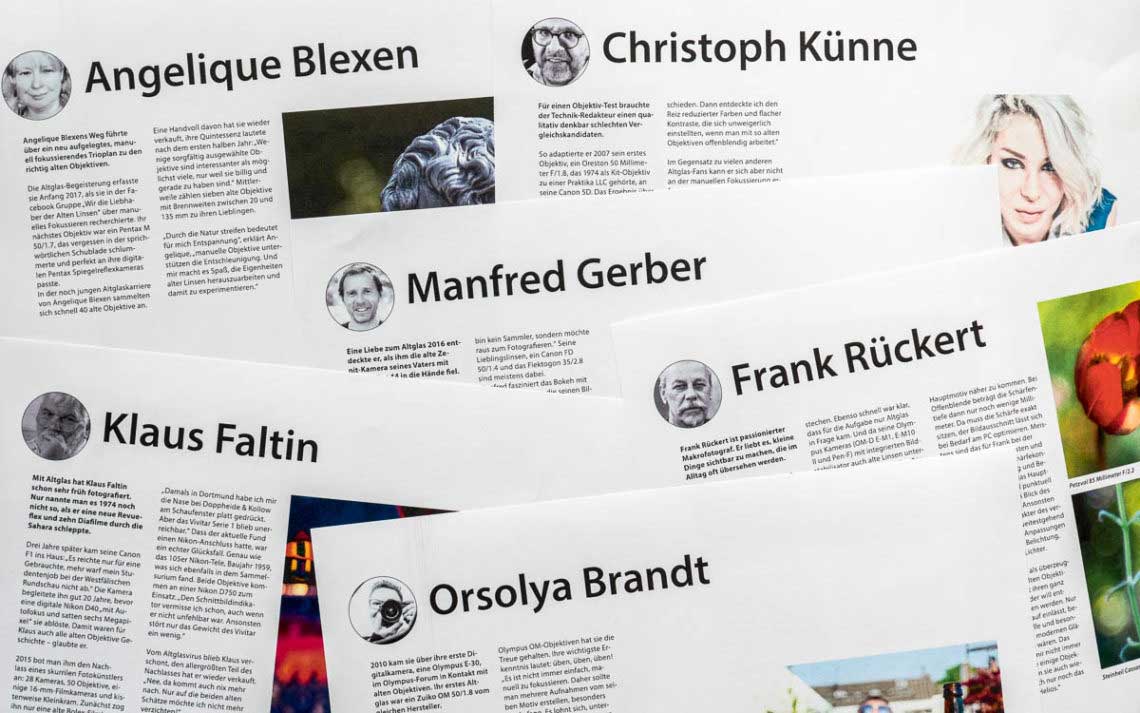 Andere kaufen zehn verschiedene Exemplare, probieren sie aus, behalten die aus ihrer Sicht besten und verkaufen den Rest wieder. Ihre wenigen verbliebenen Objektive kennen sie nach einer Weile in- und auswendig. Wieder andere entdecken das Traumobjektiv ihrer Jugend im „Altglas-Container“ und brauchen nicht mehr als diese eine alte Linse. Spezieller ist Motivation von Frank Baeseler und Hans-Jürgen Diener, was sie begeistert, beschreiben sie in den Exkursen Maßgeschneiderte Adapter und Squeezerlens im Vintage-Objektivbuch. Sechs weitere Menschen kommen im Kapitel Case Studies zu Wort und stellen einige ihrer Bilder vor.